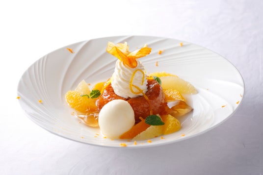◆旬の国産柑橘のサヴァラン ラム酒香るスープに浮かべて ベルガモットソルベ添え 2,700円