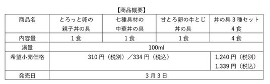 フリーズドライのお惣菜3アイテムを「丼の具」シリーズ としてパッケージリニューアル