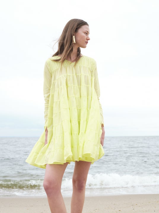 新定番ドレスとしてSOLIMANをアップデートして作られたことからネーミングされたSOLIS Dress。25SSプレコレクションで初登場いたしました。ふわっと涼しげなイメージかつ、Vネックのデザインが軽やかさをプラスします。ティアードの幅を細かくしたことで緻密で美しいバランスがうまれました。プレコレクションではライムとブラックカラー、そしてブルー×ブラックのフラワープリントを展開しており、気分にあわせてお選びいただけます。