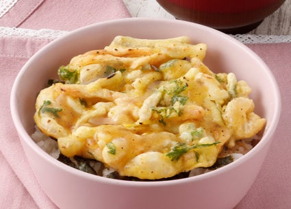 えび、いかに、国産の玉葱、ごぼう、人参を合わせたかき揚げは油調済みなので、トースターであたためるだけでお召し上がりいただけます。塩だれとかき揚げの相性も抜群です。