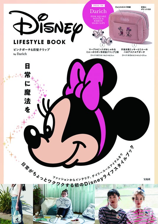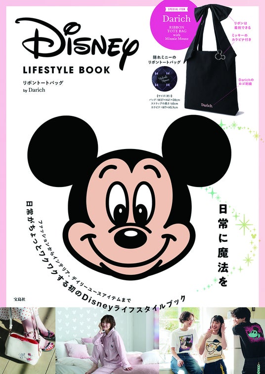 本誌では、女優・モデルの高橋愛さんが登場し、ディズニーとの思い出や、日常生活の中でディズニーのキャラクターをモチーフにしたアイテムを取り入れる工夫などを紹介しています。おしゃれな高橋愛さんが紹介する、各コンセプトのディズニーアイテムにも注目です。また、本書の発売を記念して、人気ファッションプロデューサー齊藤早紀さんがプロデュースするアパレルブランド「Darich(ダーリッチ)」よりトートバッグやポーチなど全4種のスペシャルアイテムが4種類のムック本それぞれに1種類ずつ付きます。