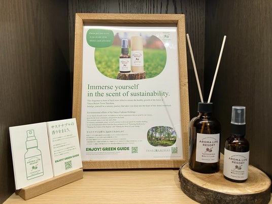 それぞれのアメニティは東急リゾーツ&ステイが運営する各施設で、試香紙にアロマスプレーを吹き付けて香りを体験できるキットと一緒に設置いたします。また、アロマはその場で二次元バーコードを読み取ってECサイトで購入することも可能です。
