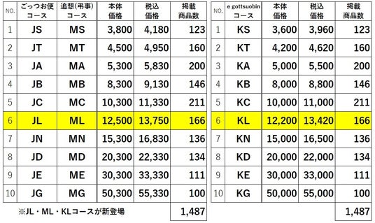 これにより、『ごっつお便』・弔事用『追想』共に各10コースの品揃えとなりました。