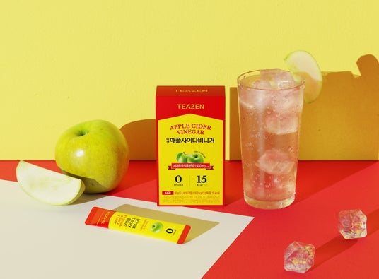 TEAZENの「アサビ」は、リンゴの最も新鮮なゴールデンタイムを守るために、韓国の有名な産地で収穫された旬の青リンゴを使用。一般的なリンゴと比べてポリフェノールの量が10倍高いと言われており、精製水を一切添加せず、3段階の自然発酵過程を経て作られています。その結果、有機酸含有量は一般的なリンゴ酢の約2倍にあたる1,500mgを実現しました。