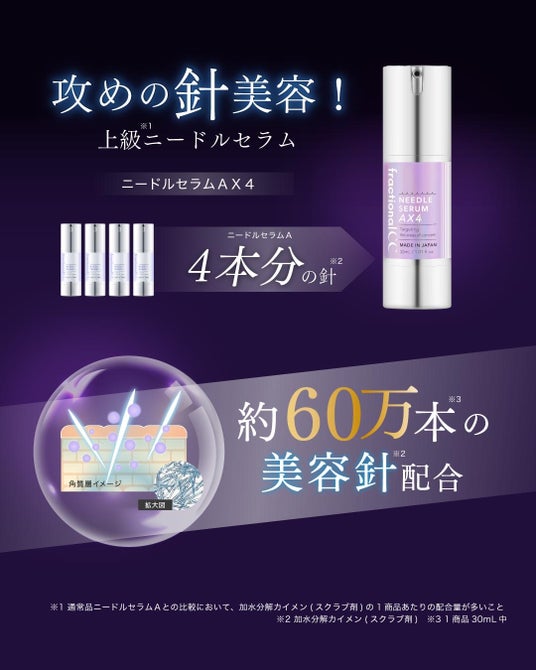 60万本※1の美容針※2とレチノール※3配合、フラクショナルCCから攻めの上級※4レチノールセラム「ニードルセラムAX4」が新登場