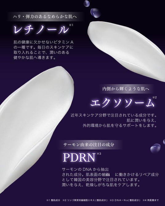 1.【高濃度※8針美容液×美容医療発想アプローチ】レチノール※3×エクソソーム※6×PDRN※7を配合