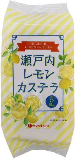 瀬戸内レモンカステラ 6切入生地に瀬戸内レモンピールとレモンペーストを使用し、しっとりふんわりと焼き上げました。爽やかな瀬戸内レモンの香りが口いっぱいに広がるカステラです。