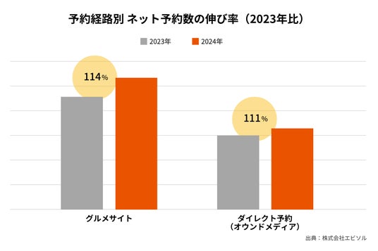 エビソル、「飲食店予約レポート2025」を発表 2024年の予約総数は105%に増加、インバウンド予約は118%と過去最多*に
