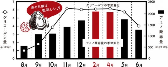 冬のイメージが強い牡蠣ですが、栄養価やうま味成分が最も高まるのは、実は2月~4月。※広島大学食品工学研究室羽倉義雄教授の研究による