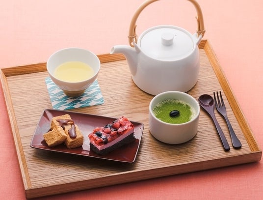 わらび餅はもちもちとした食感です。和三盆の上品な甘さの抹茶がけパンナコッタは濃厚ながら後味がすっきりとしています。また、イチゴとブルーベリーのケーキは甘酸っぱく爽やかな味わいです。和と洋のスイーツを楽しみながら、優雅なひとときをお過ごしいただけます。