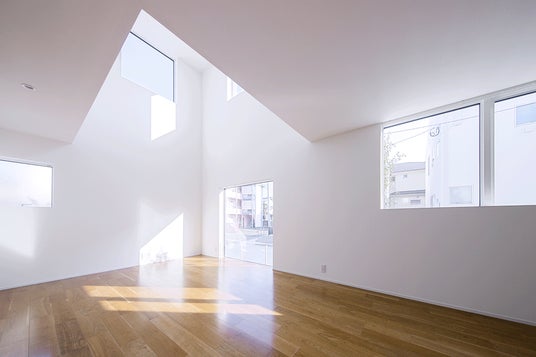 今回採用した「窓の家」は、大きな特長として、家を暮らしから考えているということです。毎日の暮らしをより豊かにするための大事な要素として考えたのが「窓」です。「窓の家」は必要な場所に必要な大きさの窓を配置することができます。絵画を見るように風景を窓で切り取って見る、例えば昔の茶室のように床の近くの地窓からみる坪庭の風景や、高窓から見える雲の断片。それらはピクチャーウインドウとして気持ちのいい空間を演出してくれます。内部の吹抜けに作ったもうひとつの窓(室内窓)からは、家族の気配を緩やかに感じる事ができます。