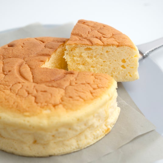 しゅわっと広がるクリームチーズの爽やかな酸味と濃厚な味わいが楽しめる、湯煎焼きでふんわりとした食感に仕上げたスフレタイプのチーズケーキ。丸形の5号サイズです。2004年に「成城石井自家製 プレミアムチーズケーキ」が登場するまで、看板商品として親しまれていました。