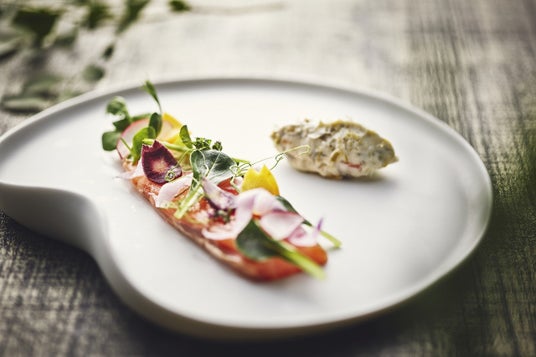 【前菜】ノルウェーサーモンの香草マリネ ぶらぶら漬けサワークリーム