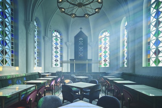 レストラン「Restaurant Cathedreclat」の幻想的なステンドグラスの下で、長崎の春を味わう特別な夜のひとときをお楽しみください。