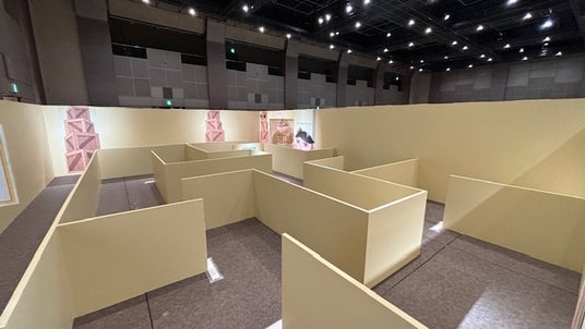 <なぞときエリア>作品の世界に入り込み、かいとうUが盗んだとされる美術品を取り返すため、おしりたんていと一緒に謎を解いて事件を解決する体験エリアです。