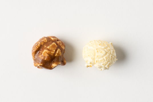 - ポップコーンは、フレーバーが一粒一粒にしっかりと絡むキャラメライズに適したまんまるなマッシュルーム型コーンを使用