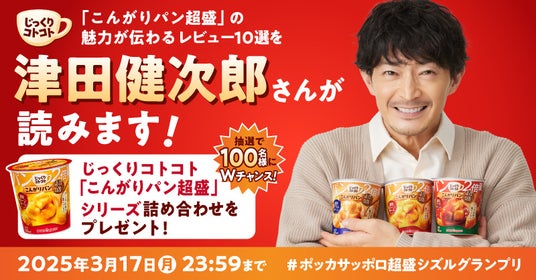 サッポロホールディングス(株)のグループ企業である、ポッカサッポロフード&ビバレッジ株式会社(代表取締役社長:時松浩、本社:愛知県名古屋市)は、ブランド史上最高のパン量(※)のじっくりコトコトこんがりパン超盛シリーズを食べたレビュー投稿キャンペーンをXにて開催します。こんがりパン超盛の魅力が伝わるレビューを津田健次郎さんが読む「#ポッカサッポロ超盛シズルグランプリ」キャンペーンを2025年3月4日(火)から3月17日(月)まで実施します。