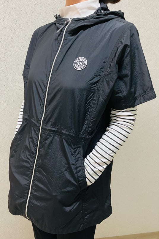 ストレッチ性に優れ、雨天時でもストレスなくプレーが出来るように撥水機能も持ち合わせています。軽量かつ清潔感のあるアウターアイテム。