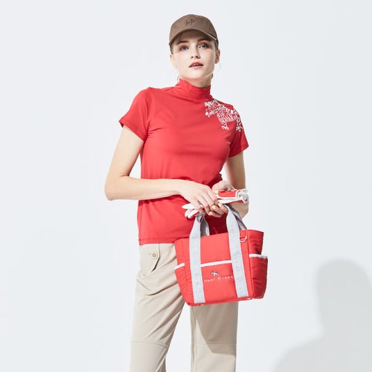 胸のモチーフと袖口のリブがスポーティなムードを演出しています。袖口のリブはお好みの位置に腕まくりができるのでスイングに集中できます。