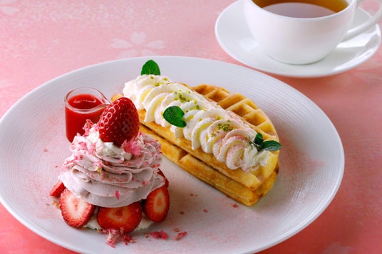 四条店限定『さくらと苺のワッフル 京都 和束紅茶付き』