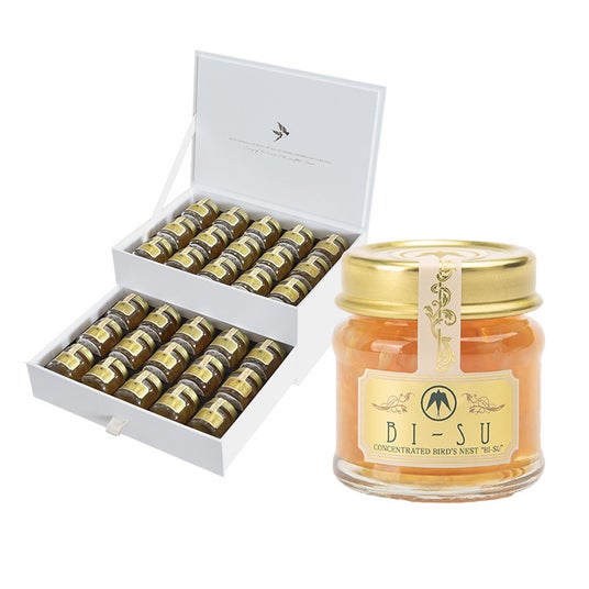 BI-SU16は希少なツバメの巣の中でも最高峰とされるマレーシア産の天然アナツバメの巣だけを贅沢にそのまま瓶詰めいたしました。