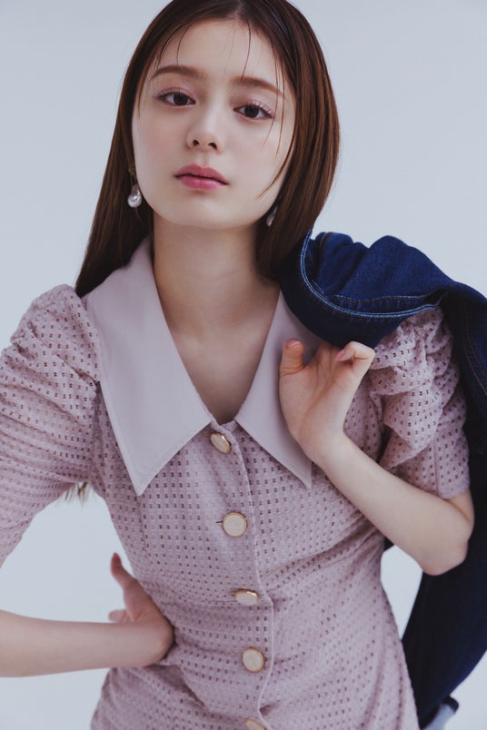 オリジナルの花柄を全体に施した繊細なシアーワンピースやRESEXXYで毎年大人気のビッグカラーデザインワンピース、ジャケットとしても着用できる2WAY仕様のミニワンピースなど、明るく淡いカラーで春ムードに一新させてくれるワンピース5型を紺野彩夏さんが華麗に着こなします。また、1枚で様になるワンピースをトレンド小物や普段使いしやすいアイテムと合わせたスタイリングを披露します。凛とした佇まいで、観る人を惹きつける紺野彩夏さんの表情にも注目です。