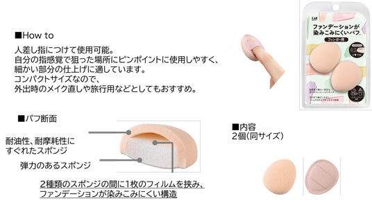 大好評「ファンデーションが染みこみにくいパフ(TM)」に3D形状とフィンガー用のミニ形状が新登場