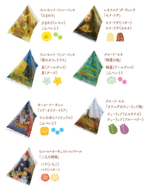 かわいらしいテトラパックに、絵画にまつわるサブレを包みました。
