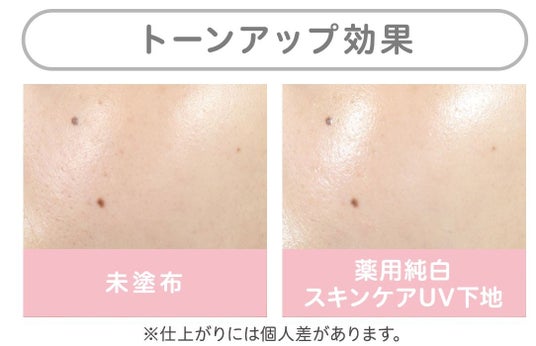 「薬用純白スキンケアUV下地 N」は美白※1・肌荒れ防止・毛穴レス※2なUV下地です。美白有効成分※6・3種のビタミンC誘導体※7・肌荒れ防止成分※8等を配合し、つるんと透明感のあるお肌に導きます。美容液成分※482%配合。またトーンアップ効果※2でお肌に透明感をプラス。SPF50+ PA++++。