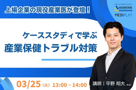 【3/25 Web開催決定】上場企業の現役産業医が登壇!ケーススタディで学ぶ、産業保健トラブル対策