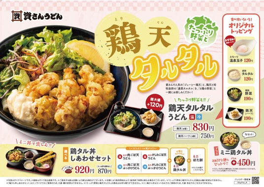 株式会社資さん(本社:福岡県北九州市、代表取締役社長:佐藤 崇史)は、3/5(水)~「鶏天タルタルうどん」、「鶏タル丼しあわせセット」の販売を開始します。