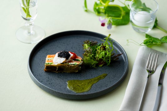 2025年1月末に長野県の善光寺 大勧進で開催されたイベントで好評だった「神の雫」原作者亜樹直氏監修、当ホテルプロデュースのワインペアリング付きプレミアムディナー。長野県に古くから根付く発酵文化を取り入れ、信州味噌や野沢菜などの発酵食品や県産の食材をふんだんに使用したコースとして展開いたしました。今回はその中から特に人気だった前菜、魚料理、肉料理を、亜樹直氏と長野ワインアンバサダー/ソムリエの花岡純也氏、そして当ホテルのソムリエが厳選したNAGANO(ナガノ) WINE(ワイン)とのペアリングセットでご提供いたします。前菜は長野県産チーズと信州サーモン、オマール海老を野沢菜のジェノベーゼソースと絡めて。魚料理は、昆布締めした甘鯛を鱗がパリパリになるまで焼き上げた鱗焼きをご用意いたします。さっぱりとした味わいの赤かぶ甘酢漬けのブールブランと合わせてご堪能ください。肉料理は、信州プレミアム牛フィレの上におから、ブルーチーズ、トリュフなどを合わせた発酵食品クラストを乗せて焼き上げました。ワインペアリングには、長野県の名高いワイナリーで生産されるワイン全4種類をお食事に合わせて提供いたします。