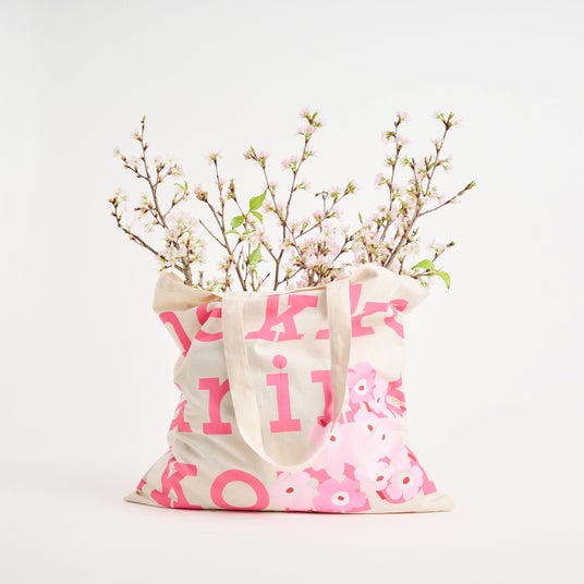 商品を27,500円(税込)以上お買い上げの方に、マリメッコオリジナルファブリックバッグをプレゼント。マリメッコ 日比谷のオープンを記念して特別にデザインされたバッグは、鮮やかなライトピンクが春らしい爽やかなムードを引き立てます。