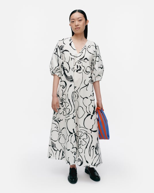 マリメッコ アーティストシリーズでは、新進気鋭のアーティストや著名なアーティストとコラボレーションし、マリメッコの特別なカプセルコレクションを展開します。今春は、スウェーデン生まれでロンドンを拠点に活動するアーティスト ペトラ・ボーナーとの協業コレクションが登場。彼女の独自の線画と鮮やかな色使いを活かしたアートワークが、マリメッコのプリント工場でウェアラブルアートとして生まれ変わります。