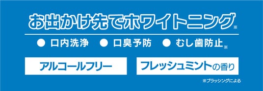 口臭予防だけでなく、歯のホワイトニング*²もサポートする 新発想の液体歯磨きです。 食事の後、口の中をスッキリさせたいときや、会議やデート前などの大切な予定の前など、息をリフレッシュさせたいときにぴったりなアルコールフリータイプ。
