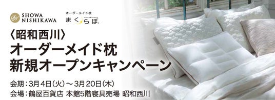 【昭和西川】鶴屋百貨店 本館5階寝具売場にオーダーメイド枕「まくらぼ」が3月4日(火)新規オープン!記念キャンペーンも実施