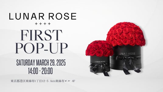 エクアドル産の最高級品質ローズを使用したLUNAR ROSEが正式ローンチ。予約販売が完売し、3月29日には初のポップアップを開催。先着100名様限定で未発売の1輪ローズギフトをプレゼント!