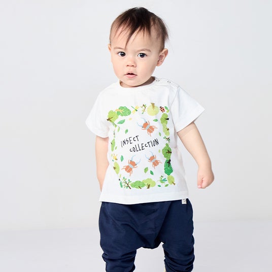 さらに、オーガニックコットン100%の「Insect Collection 昆虫大集合Tシャツ」や、再生素材を使用した「Insect Garden 図鑑柄Tシャツ」など、国際的なサステナブル認証ラベル付きにアップデートして再入荷。
