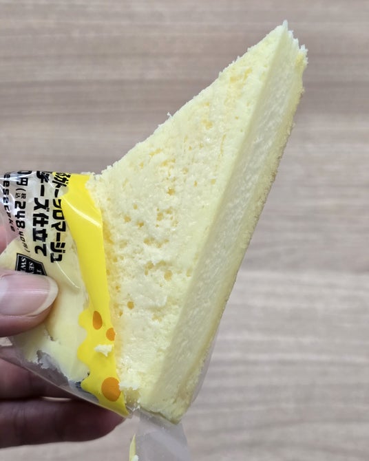 最初にご紹介するのは、ワンハンド(片手)で手軽に食べられる形態の「かじる」シリーズから、「かじるガトーフロマージュ」。しっとりスポンジと軽やかチーズ生地を重ね、軽やかな食感とチーズの旨みが特長のチーズケーキに仕立てました。