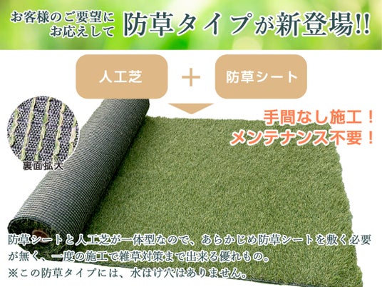 この防草タイプは、人工芝の下に防草シートが組み込まれており、土から雑草の成長を防ぎます。