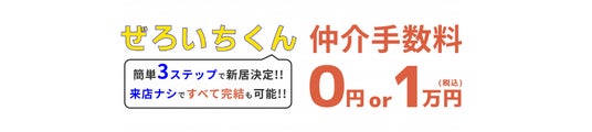 「ぜろいちくん」では、大家さんから広告料が支払われる物件は仲介手数料0円とし、それ以外の物件では1万円をいただく仕組みになっています。1万円は、内見や契約の手続きなどで発生する、最低限の仕事に対する報酬分です。そのため「ぜろいちくん」では、仲介手数料0円か1万円で賃貸物件のご紹介が実現できます。