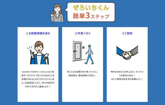 仲介手数料が無料か1万円になる「ぜろいちくん」利用の流れ