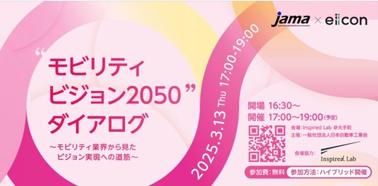 この度開催される「"モビリティビジョン2050"ダイアログ~モビリティ業界から見たビジョン実現への道筋~」は、2023年11月の「JAPAN MOBILITY SHOW 2023」、2024年10月の「Japan Mobility Show Bizweek2024」に続く「"モビリティビジョン2050"ダイアログ」の3回目となり、協創パートナーとのさらなる連携拡大・加速を目指し、モビリティ業界がビジョン実現という将来に向けて取り組んでいる道筋を2つのセッションを通して紹介するイベントとなります。
