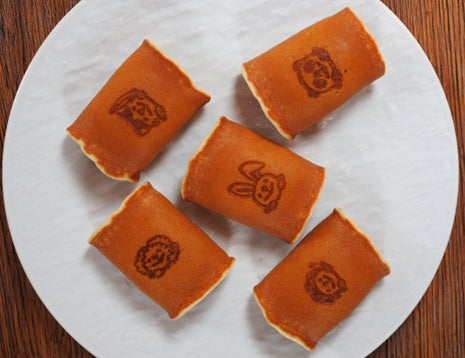 ただ焼印が表面に押してあるのではなく、あん巻きの皮に穴が開いてそこから動物が顔を覗かせているような、商品と一体化した焼印のデザインをしました。