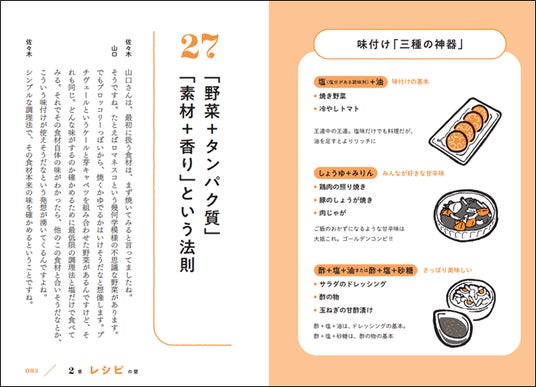 そうした「自炊のめんどくさい」を全てなくせる考え方が自然と身につくのが、本書『自炊の壁』の特徴です。必要最小限のモノで暮らすミニマリストで料理初心者の佐々木典士氏が、自炊料理家の山口祐加氏との対談形式で、コスパ/レシピ/味/献立/キッチン という5つの「自炊の壁」を突破する解決法を明かしています。「レシピなしでミニマルに料理する方法」「料理上手が買い物するときに考えていること」「狭いキッチンを快適にするアイデア」など、目からウロコの自炊攻略法をわかりやすい図解やイラストを交えながら解説し、「どうすれば、自炊を楽しく続けられるのか?」に徹底的に寄り添った、レシピ本を読む前におすすめしたい "自炊啓発書"です。