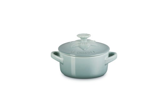 定番のココット・ロンドをモチーフにしたミニ・ココット。グラタンやデザートなどの調理器具としてはもちろん、小物やお菓子を入れたりと、幅広くご活用いただけます。フタにはコレクションを象徴するスプリングレリーフが施されており、「春の庭」を想起させるシーソルト、メレンゲ、カモミールの3色でコレクションを彩ります。