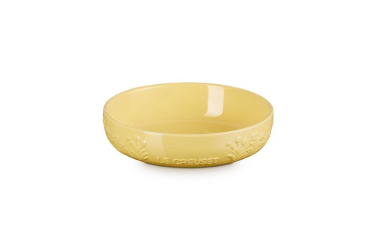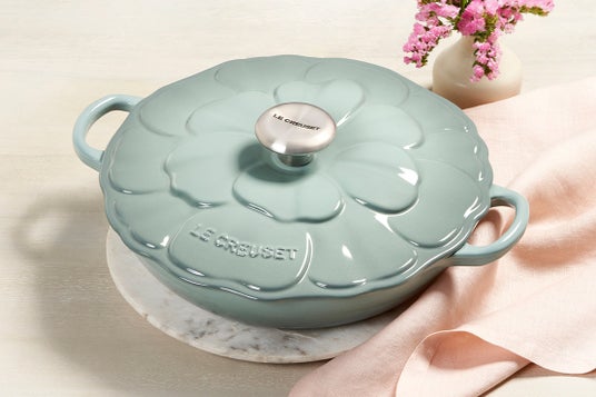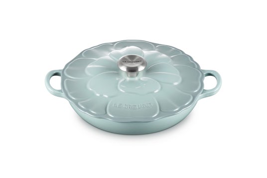 昨年人気を博した、コレクションを代表する鋳物ホーロー鍋「シグニチャー ビュッフェ・キャセロール 26cm」は、フタ全体に花びらのモチーフがあしらわれた美しいデザインが特長です。また、優れた熱伝導性と蓄熱性を兼ね備えているため、食材本来のうまみをしっかりと引き出す高い実用性を誇ります。浅型のデザインにより、出来立ての料理を美しく盛りつけて大皿としても活躍。そのままテーブルへと運べば、食卓を華やかに彩ります。