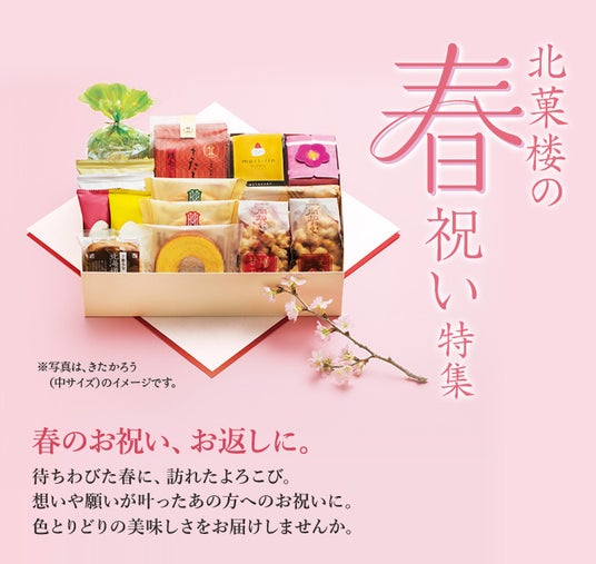 <北菓楼通販 ~春の菓子・春祝い特集~>毎年ご好評を頂いている春限定「いちごチョコバウムクーヘン」を始め、ふんわりと春が香る期間限定「桜スイーツ」を、この機会にぜひご賞味ください。