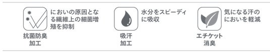 ・抗菌防臭効果:ニオイの原因となる繊維上の細菌増殖を抑制します