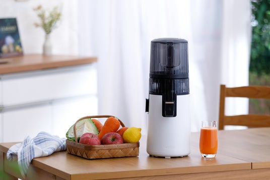 Huromコールドプレスジューサーの最新モデルを見て触って、ジュース作りを体験できます。
